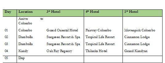SRI LANKA 04 Nights 05 Days